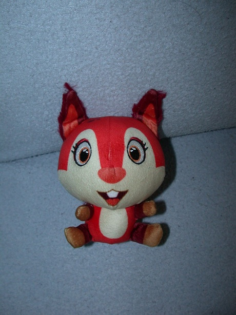 Bijzonderheden: Grote geborduurde ogen, getekend gezicht en een omhoogstaande lange pluimstaart