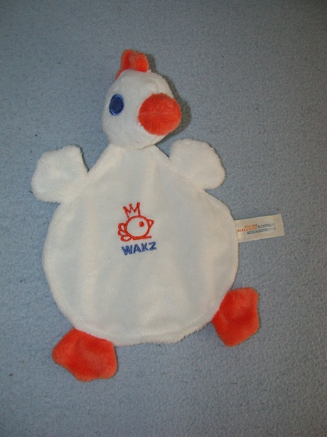 Bijzonderheden: Geappliceerde blauwe ogen, op de borst een borduursel van een koninklijke kip met de letters WAKZ