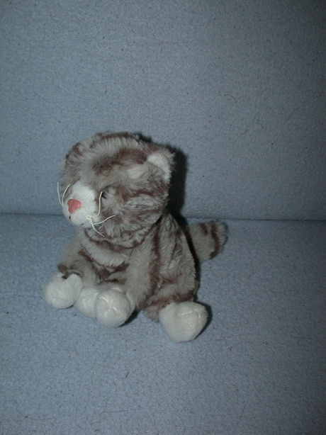 Bijzonderheden: Kraaloogjes, harde rose neus, katoenen draadjes als snorharen, geborduurde mond