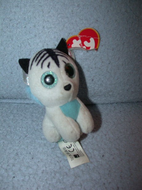 Bijzonderheden: Grote lichtblauwe glitterogen, geborduurde neus