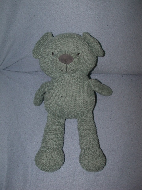 Bijzonderheden: Geborduurd gezicht, donkergrijze velours neus, de staart is een heel lichtgevuld gebreid bolletje